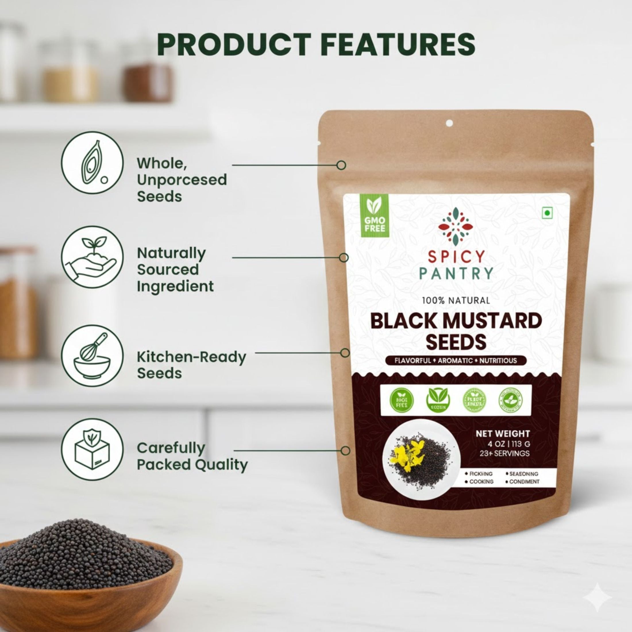 Black Mustard Seeds – All-Natural, GMO-Free, Bold Flavor for Indian Cooking & Pickling