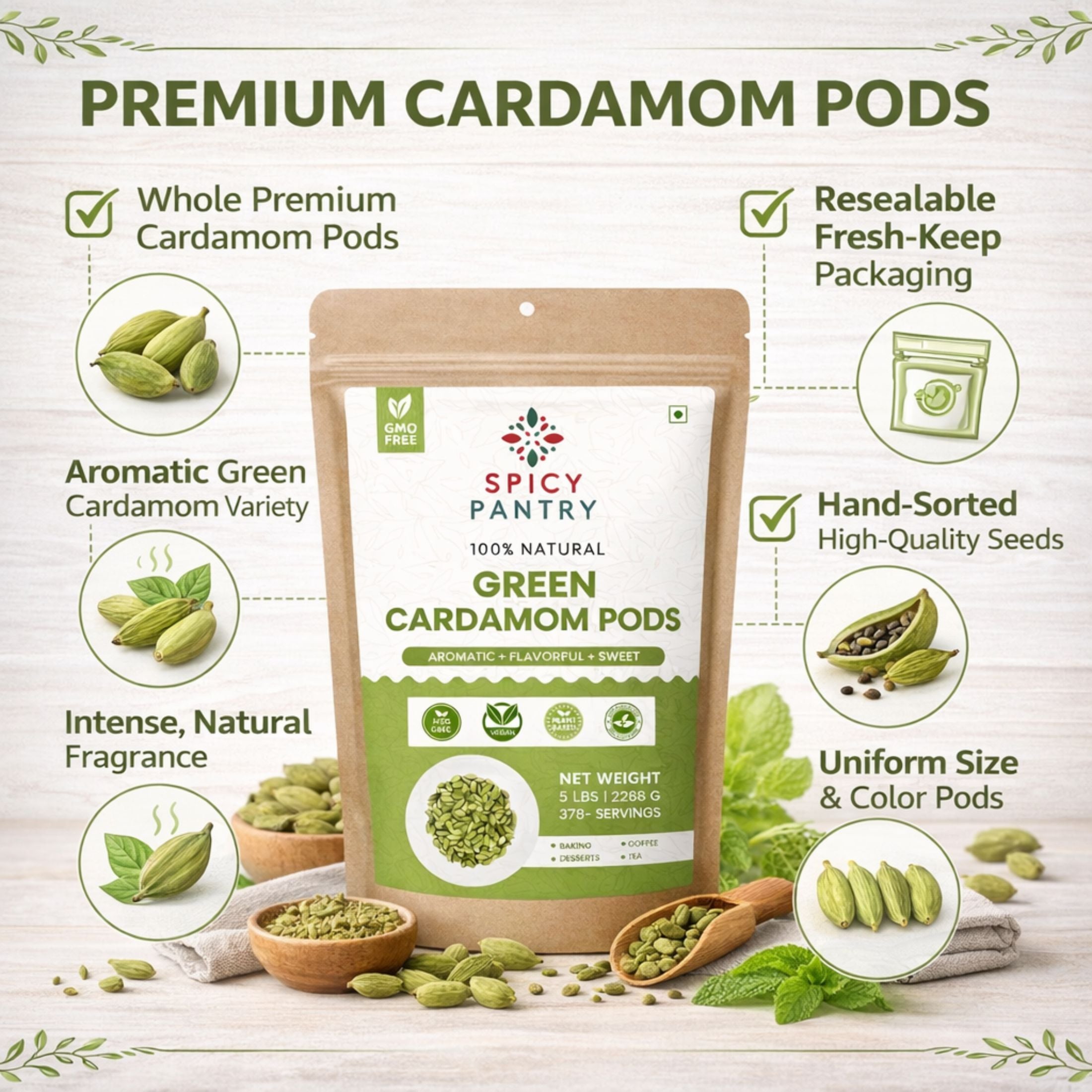 Cardamom Pods – All-Natural, GMO-Free, Whole Green Spice for Cooking, Beverages & Baking