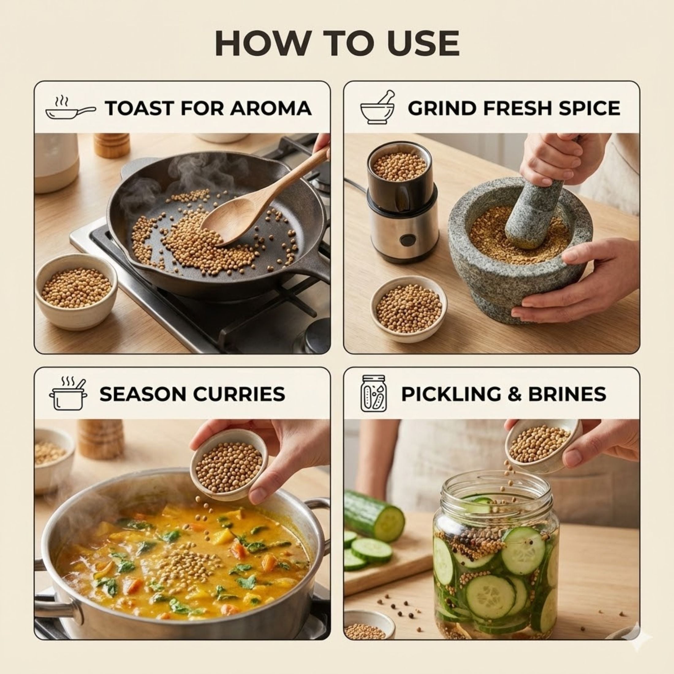 - Long-lasting potency: Whole form stays aromatic longer than ground coriander powder.