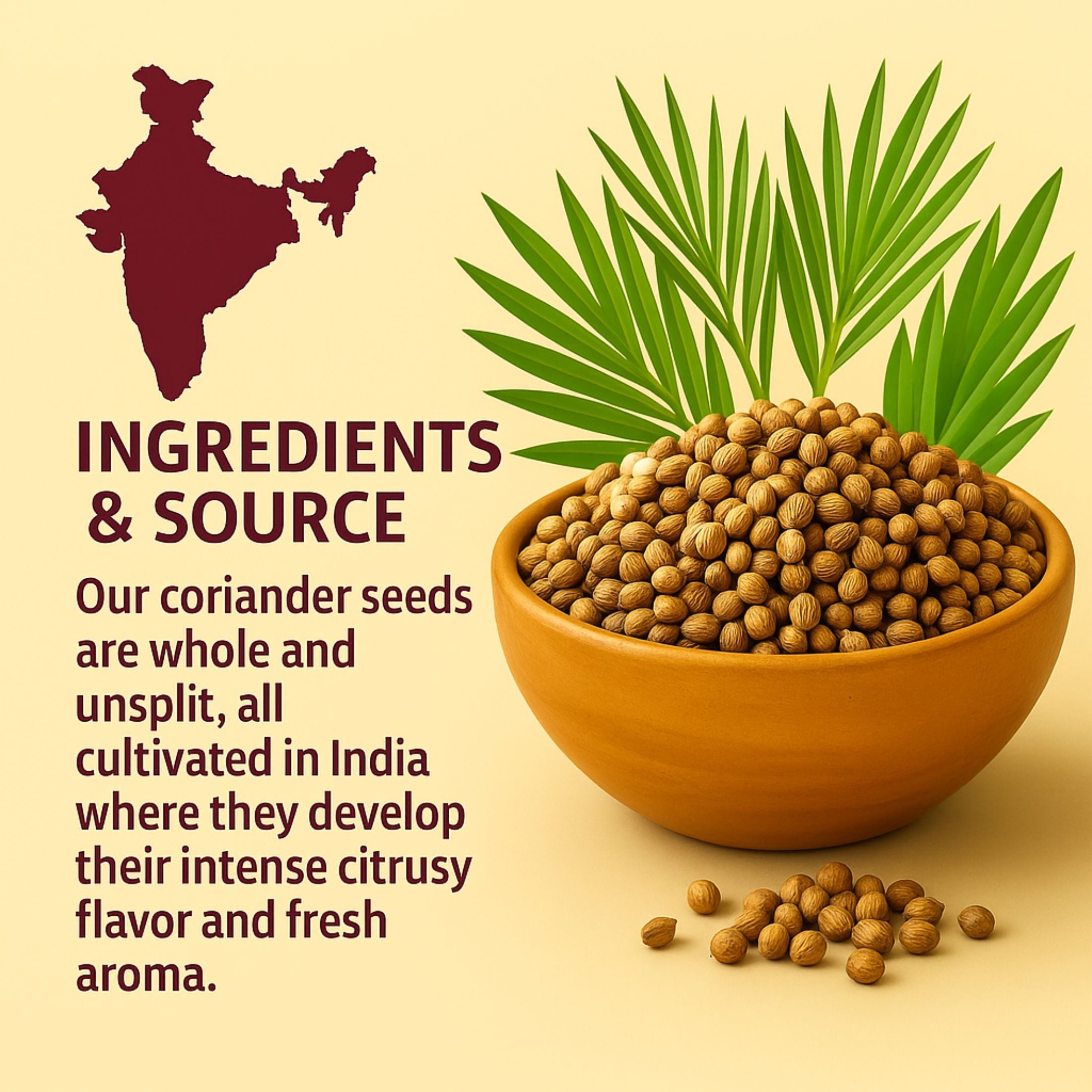 - Form: Whole coriander seeds (Coriandrum sativum).