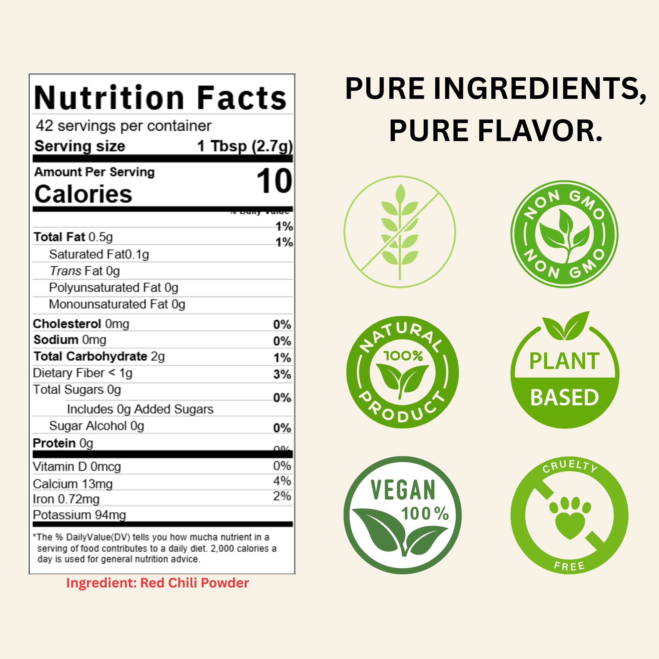 - Form: Fine red chili powder.